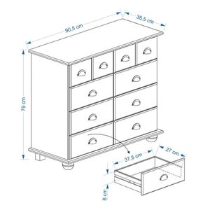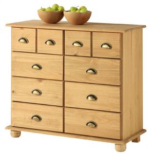 ugyanolyan jól néz ki a nappaliban és az étkezőben, mint a folyosón. A sok fióknak köszönhetően ez a stílusos gyógyszertári fiókos tárolóhely mindent tartalmaz, amelyet porvédelem alatt kíván tárolni. A lakk megőrzi a fa természetes szímét, így a fiókos szekrény nagyon természetesnek tűnik. Az elegáns héjú fogantyúk az egészet feldobja.